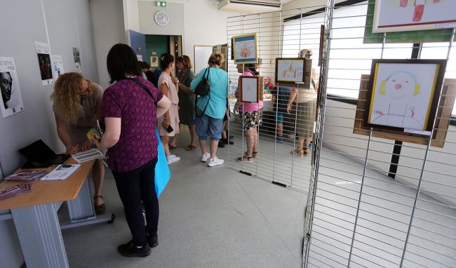 Aujourd’hui, c’est jour d’exposition à l’UTAS de Laon. Les œuvres exposées ont été réalisées un mois plus tôt par des enfants et des adultes lors d’un atelier sur le thème du cirque vu par Toulouse-Lautrec. Et il y a du monde pour admirer le travail des artistes en herbe !