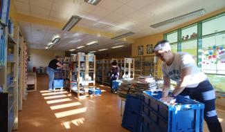 C’est un grand jour au sein de la médiathèque de Mons-en-Laonnois : les camions sont à quai pour préparer une transformation majeure… Aujourd’hui tous les ouvrages quittent la bibliothèque et seront immédiatement remplacés par un nouveau fonds, entièrement renouvelé, allégé et qui sera ainsi mieux mis en valeur dans les rayonnages. Une petite révolution qui a demandé de longues semaines de préparation…
