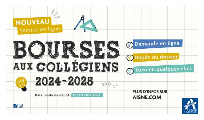 Dès la rentrée scolaire 2024, les demandes de bourses pour les collégiens se feront uniquement en ligne via la plateforme dédiée aux subventions du Département accessible facilement depuis le site internet du Département www.aisne.com