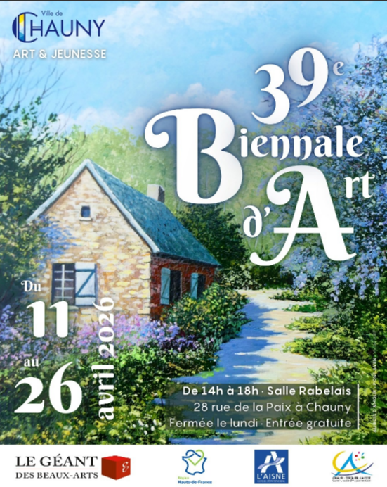 Du 11 au 26 avril, de 14h à 18h à la Salle Rabelais et salle Hémond de Chauny, venez nombreux assister à la 39e édition des Biennale d'Art. Au programme, découverte de plus de 270 tableaux en vente et d'une cinquantaine d'artistes. Entrée gratuite, fermée le lundi. Plus d'informations au 03 23 38 70 70