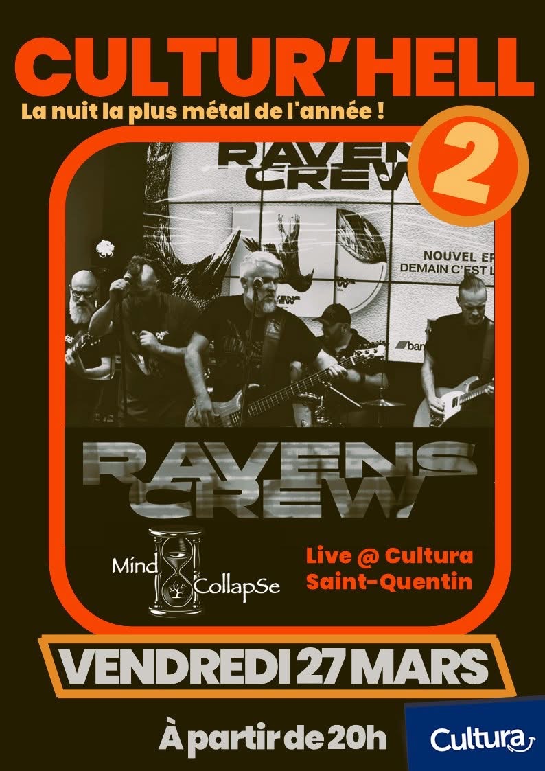 Venez participer au CULTUR'HELL, la nuit du métal dans votre Cultura Saint-Quentin le vendredi 27 mars 2026 à partir de 20h. Au programme 2 groupes : - Mind Collapse - Ravens Crew Une soirée 100% métal qui va faire trembler les murs du magasin. Un food truck sera présent sur le parking pour une petite restauration sur place, histoire de reprendre des forces entre deux headbangs. Entrée libre.