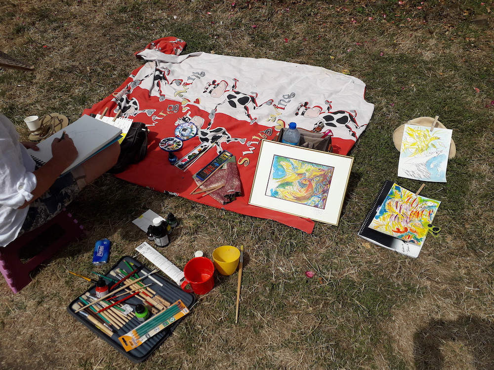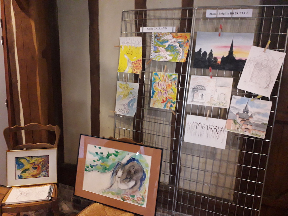 En fin d'après-midi, les œuvres réalisées dans la journée (ou en cours de réalisation) seront exposées dans la salle des fêtes du village, et un apéritif sera offert par l'association aux artistes, et à leurs admirateurs.