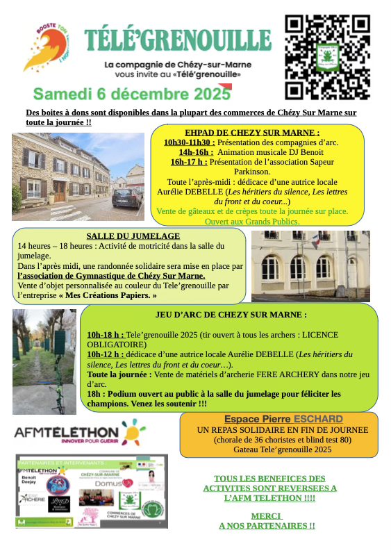 Préparez vos sourires et vos bottes, car le samedi 6 décembre, tout Chezy-sur-Marne va vibrer pour une journée pleine de partage et de solidarité !