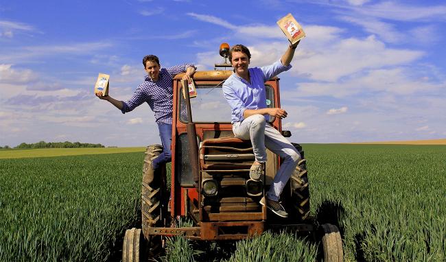 Cette idée originale a été développée par Pierre-Louis Lambert et Antoine Lemaire, vite rejoints dans l’aventure par Charles Delbaere. Ces jeunes picards (29 ans en moyenne) viennent tous du milieu agricole et se sont rencontrés pendant leurs études à Beauvais. Ils sont attachés à l’idée de proposer des produits savoureux, bons pour la santé et fabriqués localement. Leur société Ferm Fabrik est née en janvier 2021 et s’est installée à Itancourt dans l’ancien site de l’usine Nestlé. Le blé pousse à 15 km de là, à Bellenglise, sur les terres que cultive Pierre-Louis, alias "Pilou".