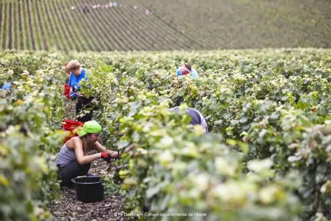 Période d’intense activité en Vallée de la Marne, le début du mois de septembre est le moment des vendanges. Environ 6 000 cueilleurs sont mobilisés sur les 3 300 hectares en AOC du département