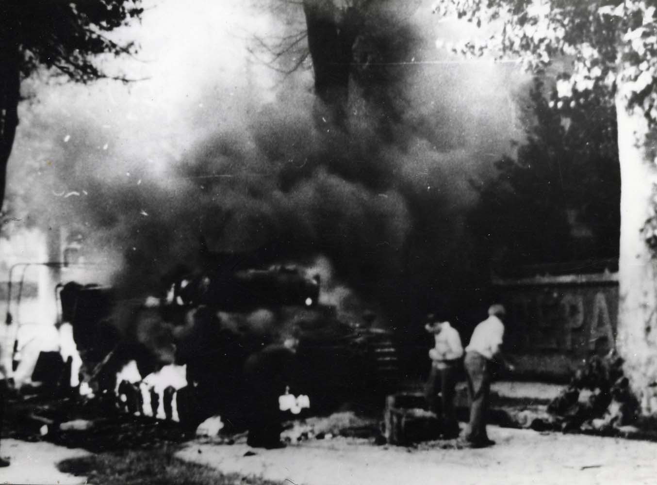 Un char allemand Tigre brûle sur la route de Paris à Soissons