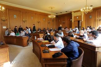 35 élèves de 3ème des collèges Charlemagne (Laon), Gérard Philipe (Soissons), De la Chesnoye (Saint-Gobain), Hanotaux (Saint-Quentin) et Cobast (Hirson), présentaient la restitution de leurs travaux menés durant l’année sur la thématique « Sport et engagement ».