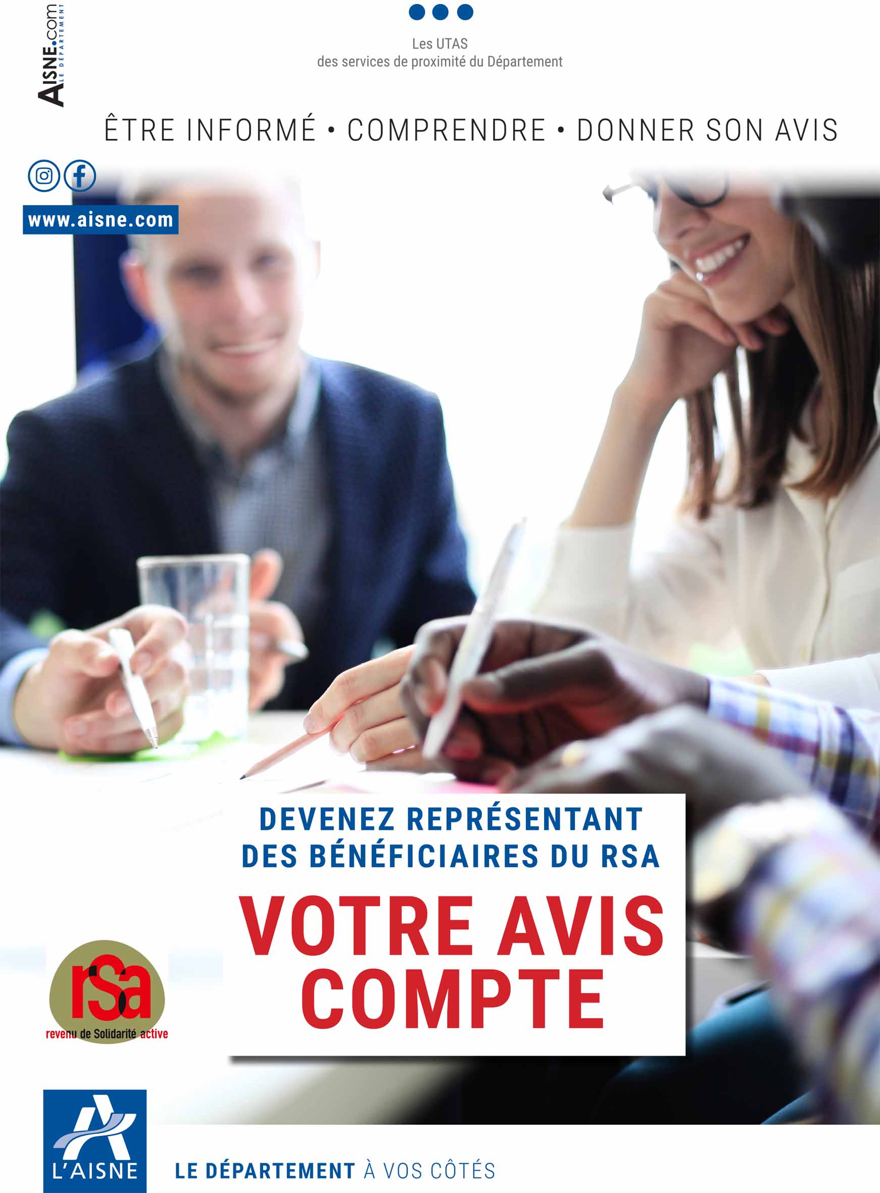 Votre avis compte : devenez représentant des bénéficiaires du RSA ! Dans chaque Unité territoriale d’action Sociale (UTAS), des représentants participent aux réunions mensuelles portant sur les dispositifs d’insertion et aux équipes pluridisciplinaires qui étudient les situations individuelles (réorientations, sanctions…)