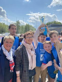 Chaleureusement applaudis, ils ont ensuite rejoint l’ensemble des acteurs de cette journée mémorable pour une photo souvenir aux côtés d’Isabelle Ittelet, vice-présidente du Conseil départemental Collège, jeunesse, citoyenneté et Mémoire, et de Colette Blériot, vice-présidente Sport et Terre de Jeux. La remise des prix était également parrainée par le boxeur saint-quentinois Jérôme Thomas et le champion de para tir soissonnais Pierre-Marie Bannier, de retour parmi les élèves avec qui ils avaient eu l’occasion de partager leur expérience de sportif de haut niveau lors des rencontres mises en place pendant l’année scolaire.