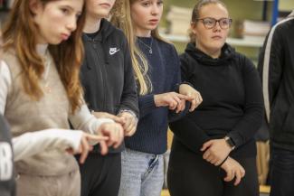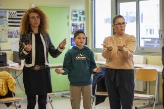 Répartis en cercle, élèves et enseignants s’appliquent à reproduire, et si possible à mémoriser, les signes qui s’appliquent au vocabulaire du sport, et ça ne se limite pas au nom des disciplines. Comment dit-on « un entraîneur », « un terrain », « on a gagné » ? Les élèves sont très réceptifs et s’interrogent au-delà de la seule problématique sportive. Peut-on faire des fautes de grammaire en langue des signes ? Est-ce qu’il existe un alphabet ? La langue est-elle la même pour tous les sourds et malentendants du monde ? « C’est quelque chose de nouveau pour eux et il y a un côté ludique dans la gestuelle de la langue des signes » remarque Camille Tavernier qui a créé l’association « Des racines et des ailes » en 2023 avec l’orthophoniste Émilie Moeglin. Le cœur d’activité de l’association est la création d’ateliers de toutes sortes pour provoquer l’échange, aussi bien chez les plus jeunes que chez les séniors. La langue des signes est une des composantes de l’association, mais toutes les formes d’expression peuvent être sollicitées grâce à un réseau qui comprend une éducatrice pour enfant, une puéricultrice et une art-thérapeute. Camille Tavernier a pour sa part longtemps travaillé comme enseignante spécialisée auprès d’enfants sourds et malentendants, notamment à l’école Bachy de Saint-Quentin.