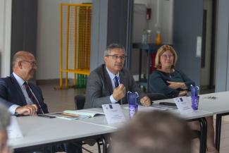 En matière de transition écologique, le collège de Fresnoy-le-Grand a fait valoir la mise en œuvre d’une gestion différenciée des espaces verts afin de préserver la biodiversité ainsi que ses efforts en matière de réduction des déchets alimentaires. « Avec les services de la Direction de l'Aménagement du Territoire, de l'Économie et du Développement Durable (DATEDD) du Département nous avons le projet d’intégrer 6 composteurs rotatifs pour la valorisation de nos déchets. » soulignait Nathalie Guille, gestionnaire du collège. Le passage par le restaurant scolaire et la rencontre avec les équipes techniques aura été l’occasion pour Nicolas Fricoteaux de rappeler la volonté départementale de développer encore davantage les circuits courts pour l’approvisionnement des cantines. Un aspect important de la gestion de l’établissement car, comme de nombreux collèges en milieu rural, celui de Fresnoy-le-grand accueille une large majorité de demi-pensionnaires, ils sont 225 sur les 376 élèves inscrits. « Nous soutenons toutes les initiatives dans ce sens, il s’agit de transmettre les bons usages et les bons gestes aux élèves, il faut qu’ils aient le réflexe de la transition écologique. »