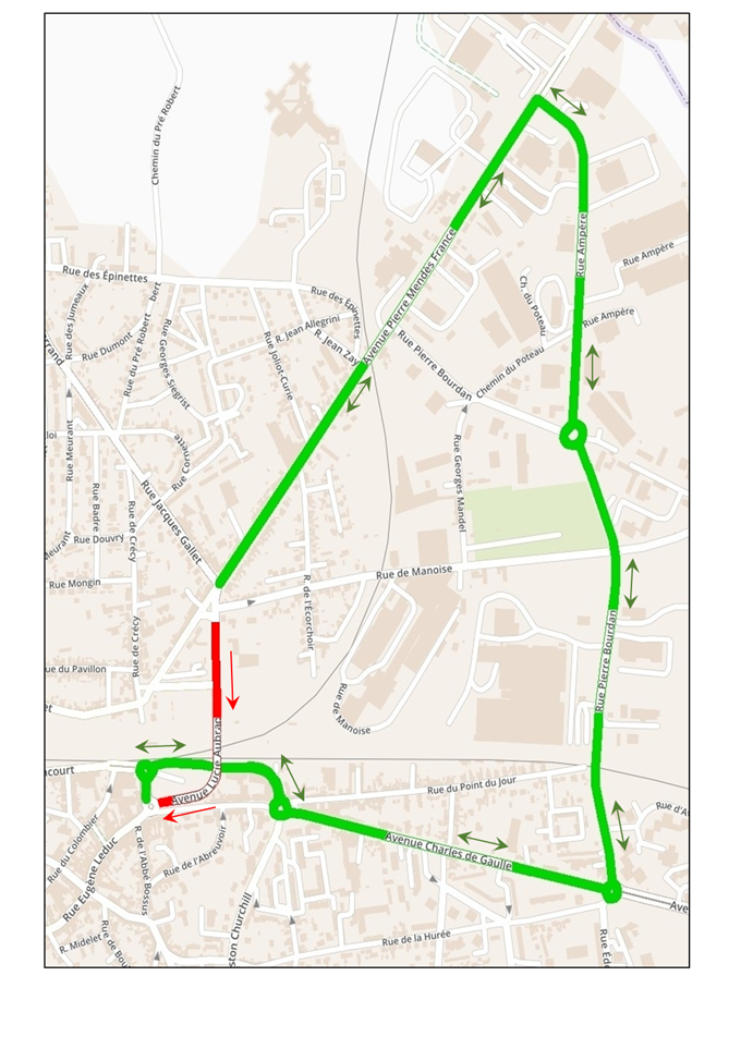 > Déviation de la circulation dans le sens Centre-Ville de Laon > Chambry selon un itinéraire empruntant les voies Gras Brancourt, Charles de Gaulle, Pierre Bourdan, Ampère et Mendès France.