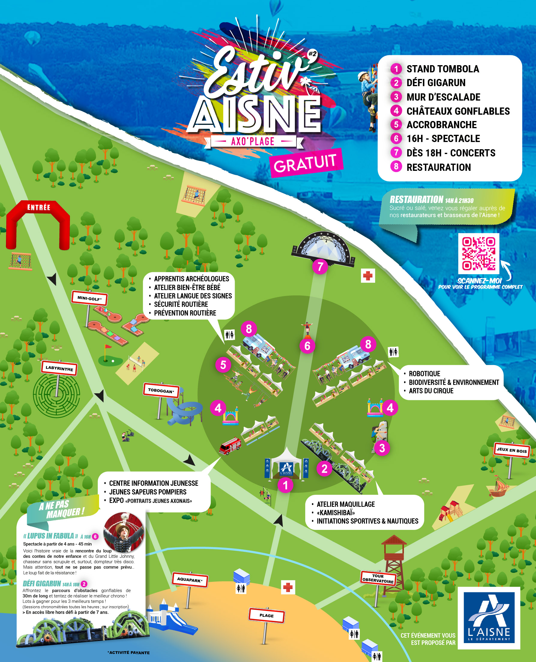 Venez profiter des nombreuses animations gratuites tout public organisées par le Département de l’Aisne le samedi 17 juin dès 14h sur la base de loisirs d’Axo’plage à Monampteuil.