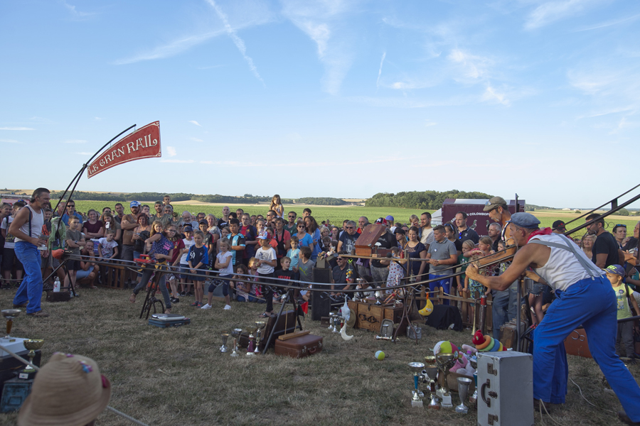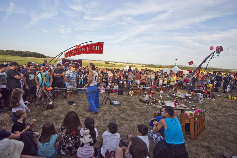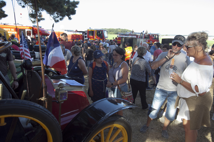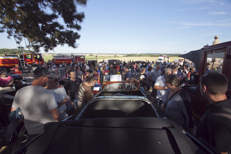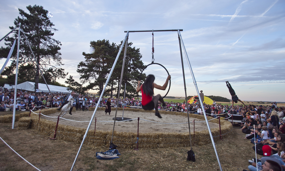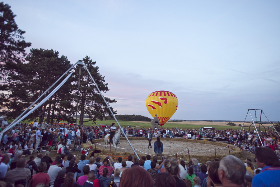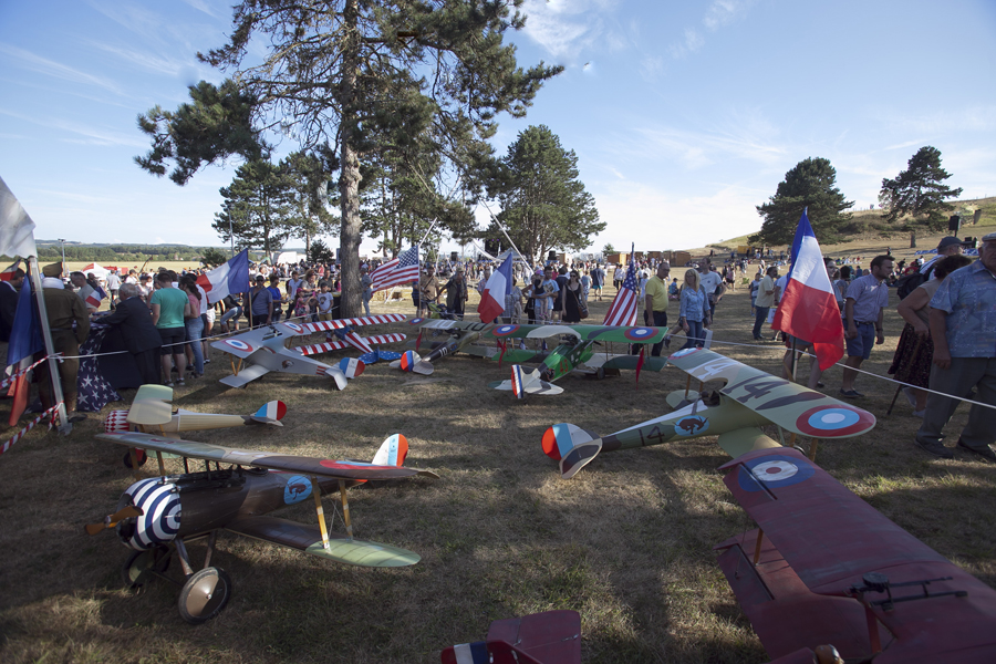 Attirés par les voitures anciennes et les modèles réduits d’avions d’époque, les curieux ont massivement investi les stands et les espaces d’expositions avant que ne débute le spectacle « Les casques de cuir », exécuté par trois répliques d’avions de la Grande Guerre qui ont rivalisé de voltige en reconstituant un combat aérien au dessus de la butte Chalmont. Vers l’espace guinguette, c’est un authentique bal musette qui attendait les visiteurs, mené tambour battant par l’accordéoniste Nicolas Demizieux et son orchestre tandis que de son côté, la Cie Attractions et Phénomènes attirait le chaland avec une attraction complètement d’époque : le grand rail, jeu de force qui faisait fureur dans toutes les foires et fêtes foraines au début du XXe siècle. Une montgolfière gonflée pour l’occasion par la société Pilatre de Rozier permettait également, par petits groupes, de prendre un peu de hauteur pour avoir une vue d’ensemble de la manifestation. La Cie La Lanterne magique a ensuite pris la relève avec le spectacle « Et demain, il fera beau », une création équestre et acrobatique rendant un hommage particulier aux chevaux de guerre.