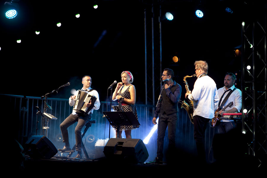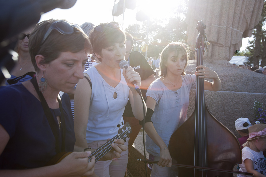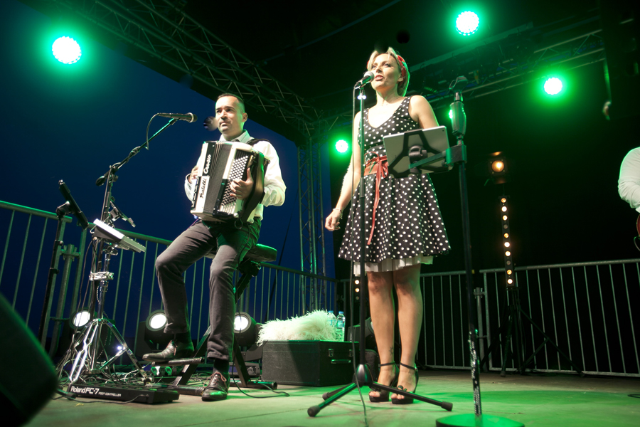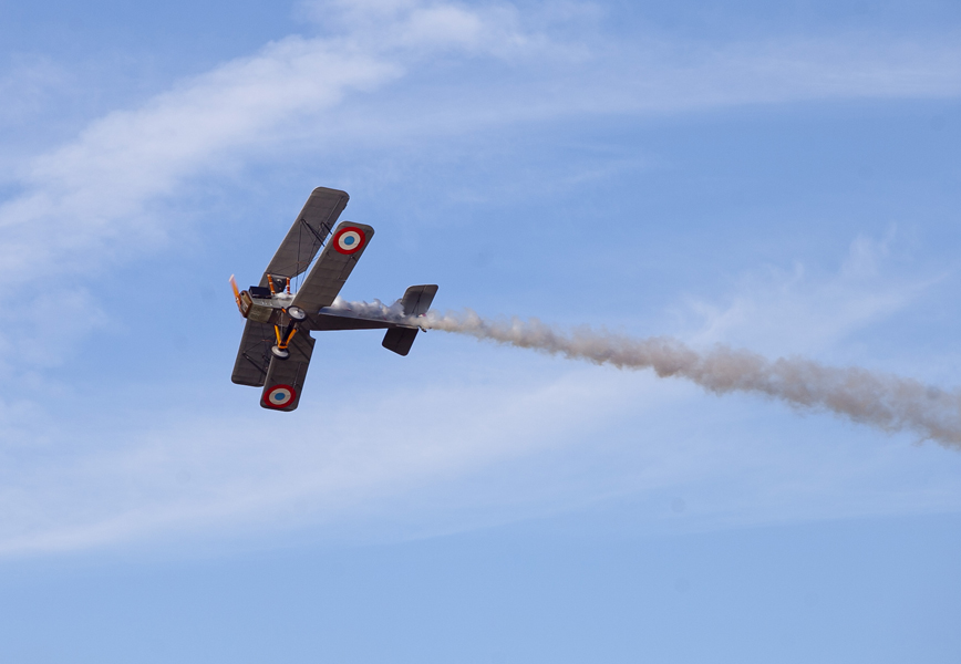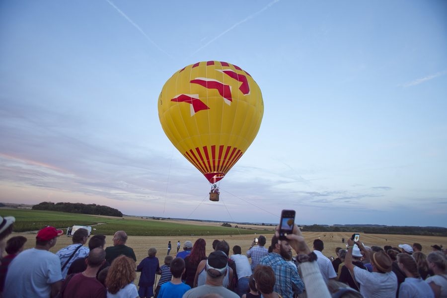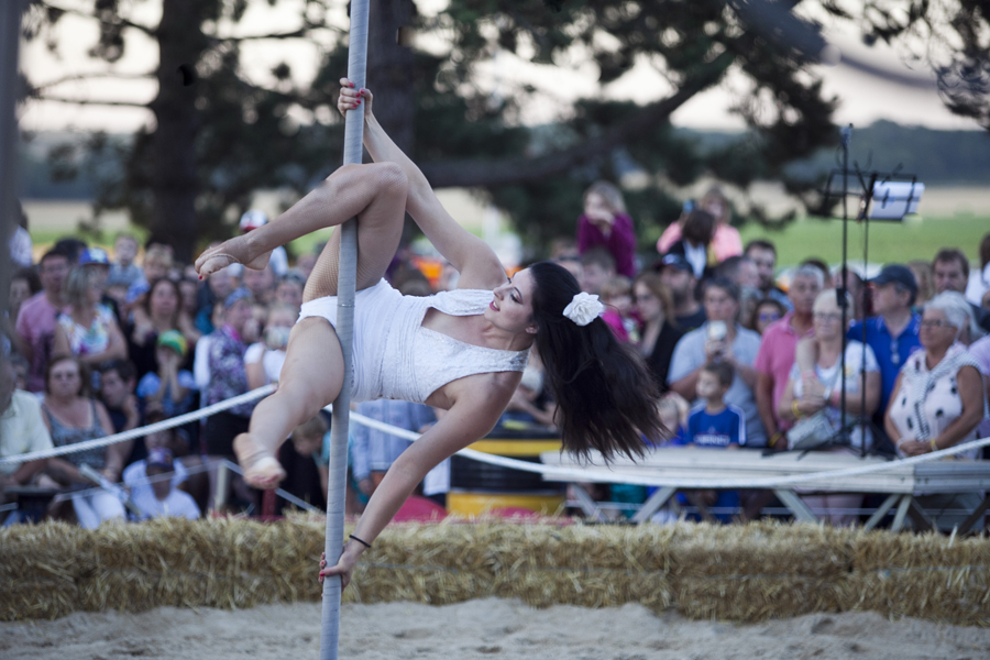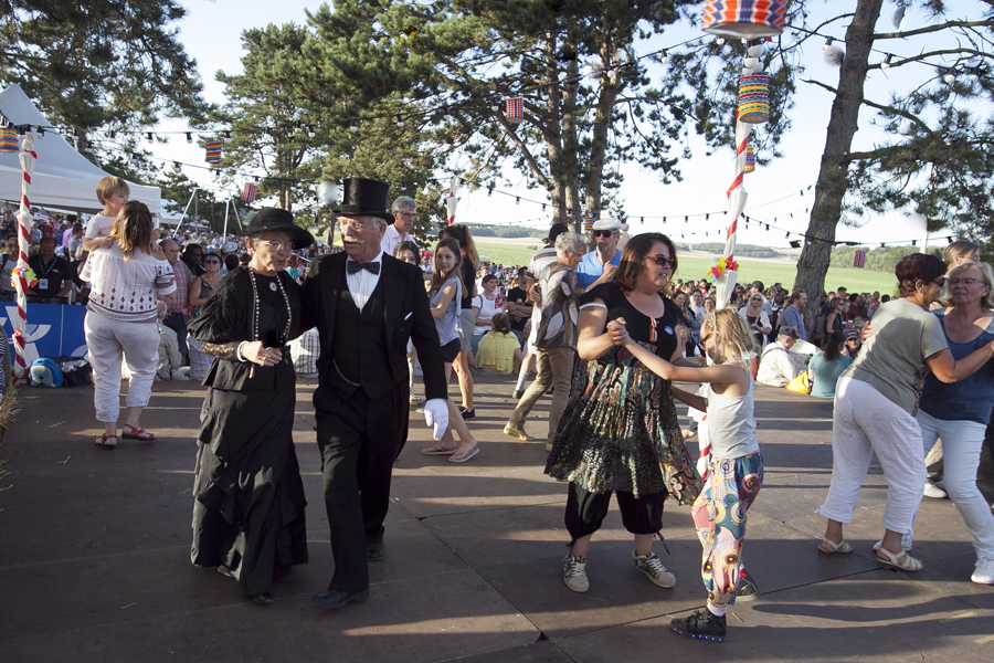 Attirés par les voitures anciennes et les modèles réduits d’avions d’époque, les curieux ont massivement investi les stands et les espaces d’expositions avant que ne débute le spectacle « Les casques de cuir », exécuté par trois répliques d’avions de la Grande Guerre qui ont rivalisé de voltige en reconstituant un combat aérien au dessus de la butte Chalmont. Vers l’espace guinguette, c’est un authentique bal musette qui attendait les visiteurs, mené tambour battant par l’accordéoniste Nicolas Demizieux et son orchestre tandis que de son côté, la Cie Attractions et Phénomènes attirait le chaland avec une attraction complètement d’époque : le grand rail, jeu de force qui faisait fureur dans toutes les foires et fêtes foraines au début du XXe siècle. Une montgolfière gonflée pour l’occasion par la société Pilatre de Rozier permettait également, par petits groupes, de prendre un peu de hauteur pour avoir une vue d’ensemble de la manifestation. La Cie La Lanterne magique a ensuite pris la relève avec le spectacle « Et demain, il fera beau », une création équestre et acrobatique rendant un hommage particulier aux chevaux de guerre.