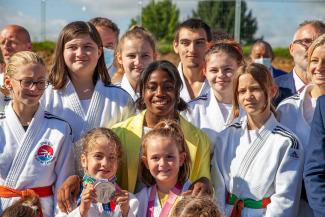 Sarah-Léonie Cysique entourées des judoka de Fère en Tardenois