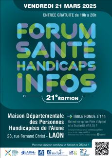Comment s'informer, comment s'y retrouver dans les démarches administratives, pour la scolarisation, l'orientation professionnelle, pour l'accès ou le retour à l'emploi... Associations et partenaires vous accueillent le vendredi 21 mars 2025 à la Maison Départementale des Personnes Handicapées de l'Aisne (MDPH) de 10h à 20h (entrée gratuite), à Laon (28 rue Fernand Christ).