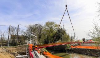 Au démarrage du chantier, le 6 novembre 2023, ce sont d’abord les fondations profondes qui ont été réalisées, suivies d’une période de séchage de 4 semaines. Le tablier de l’ancien pont a ensuite été démoli, pour ensuite faire place à la construction des nouveaux appuis.