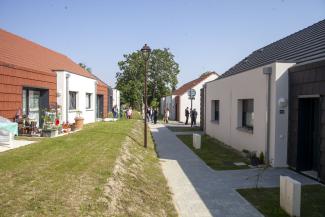 L’ensemble est composé de 5 bâtiments pour 14 logements et une salle commune. Les logements sont des pavillons T2 de 58 m2 en plain-pied, tous accessibles aux personnes à mobilité réduite. Chaque pavillon bénéficie d’un espace extérieur avec terrasse et dispose d’une place de parking privative.