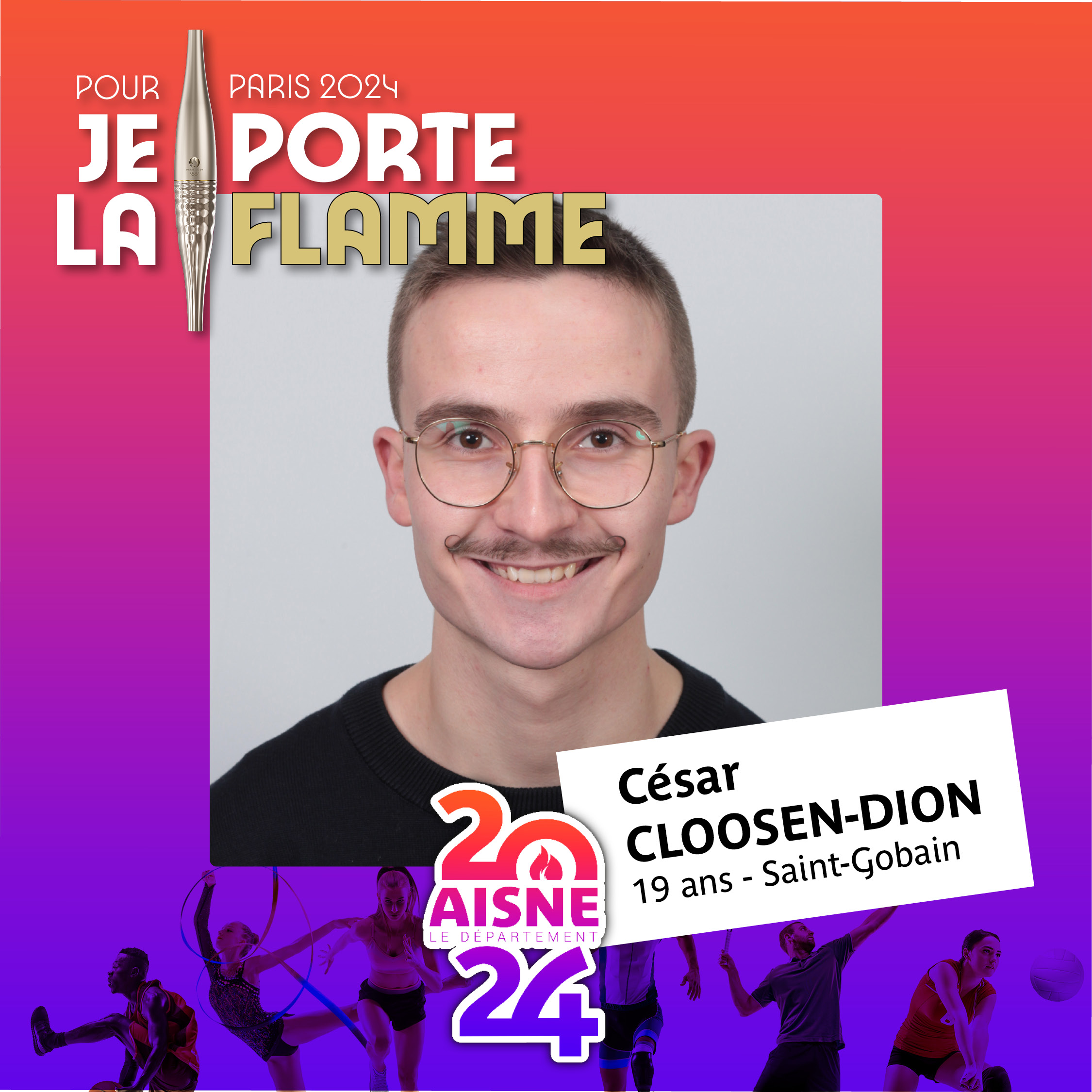 « C’est une joie d’annoncer que tous les porteurs de la Flamme proposés par le Conseil départemental ont été retenus par le COJO. Cette sélection illustre la diversité et la richesse des habitants de l’Aisne qui se mobilisent pour le territoire : ils sont sportifs, bénévoles associatifs, étudiants, retraités ou travailleurs sociaux et vont avoir l’honneur, grâce à leurs engagements, de porter la Flamme Olympique et Paralympique » déclare Nicolas Fricoteaux, président du Conseil départemental de l’Aisne.