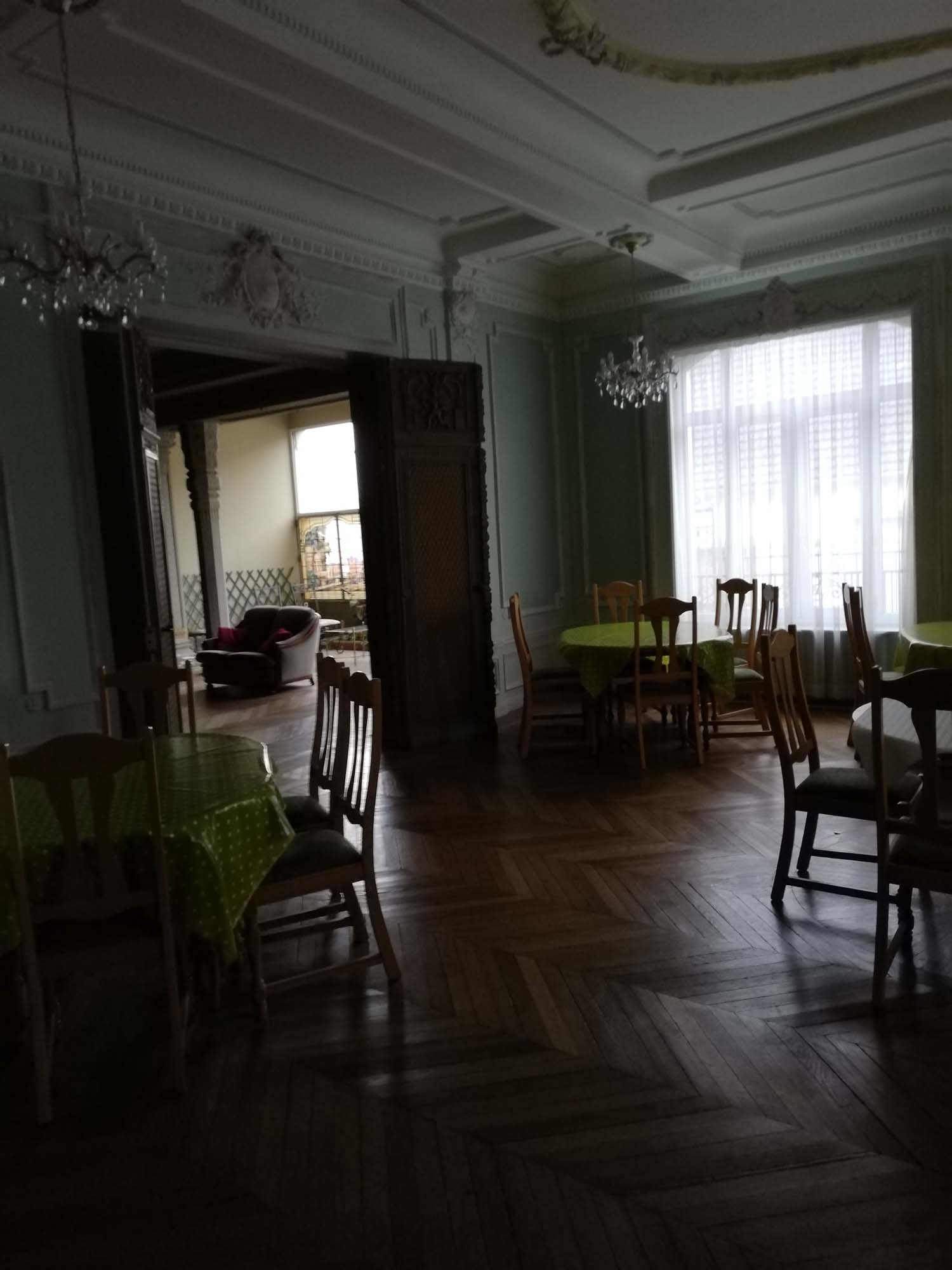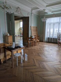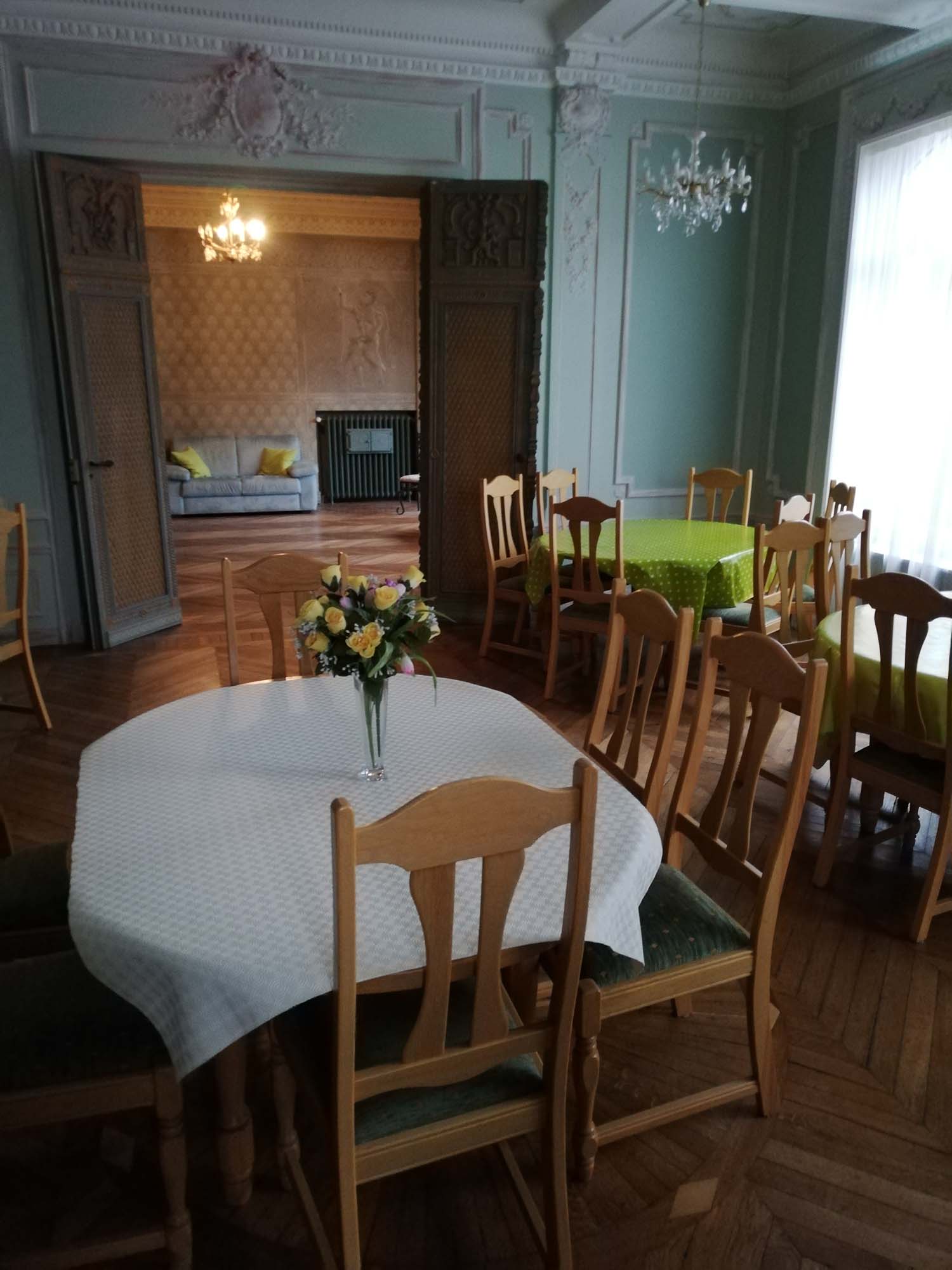 - Au rez-de-chaussée : un hall d’entrée, sanitaires, une salle de réception de 61 m², un salon, une grande cuisine équipée, une salle de séminaire, une suite aux normes handicapées ;