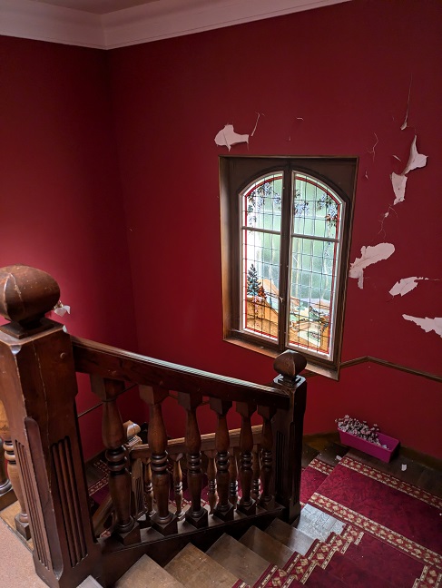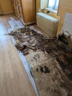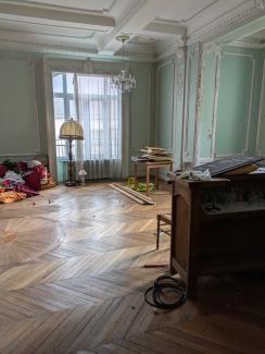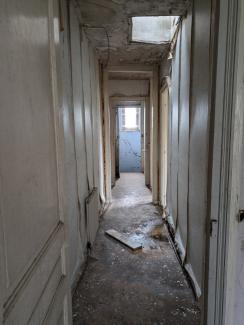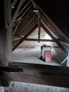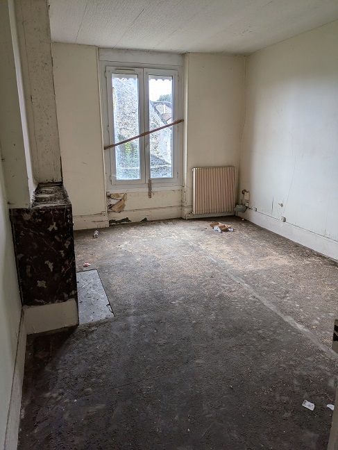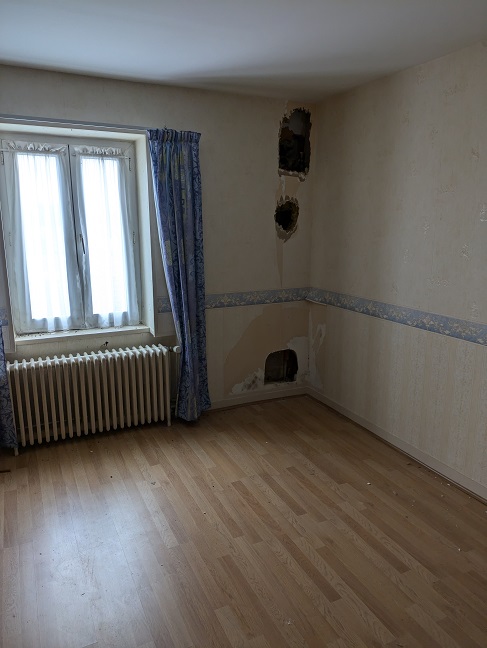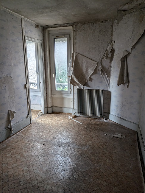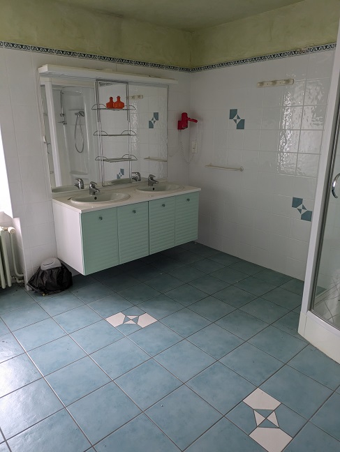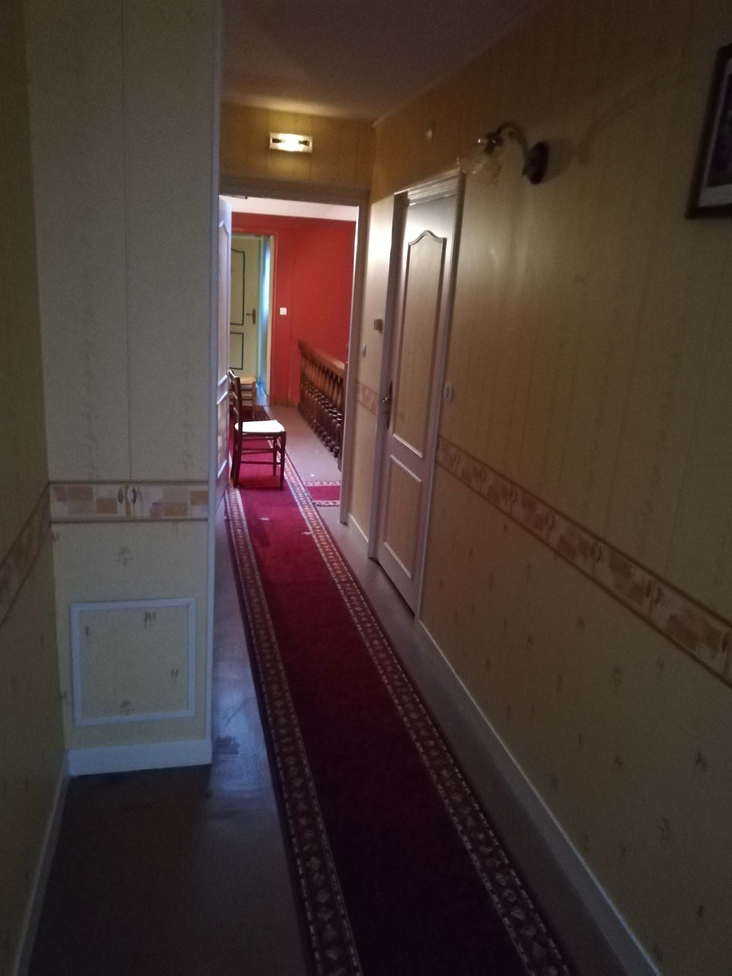 - A l’étage : couloir desservant WC, ancienne cuisine, une pièce avec cheminée, deux pièces en enfilade, salle de douche sans fenêtre ;