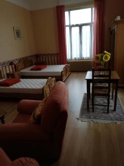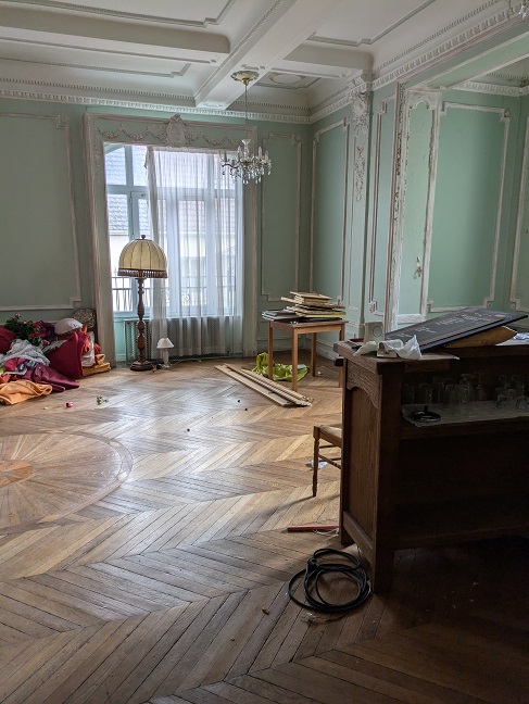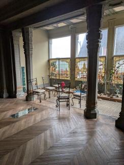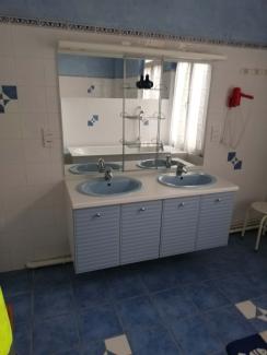- Au rez-de-chaussée : entrée sur une grande salle en trois parties, salle d’eau, WC ;