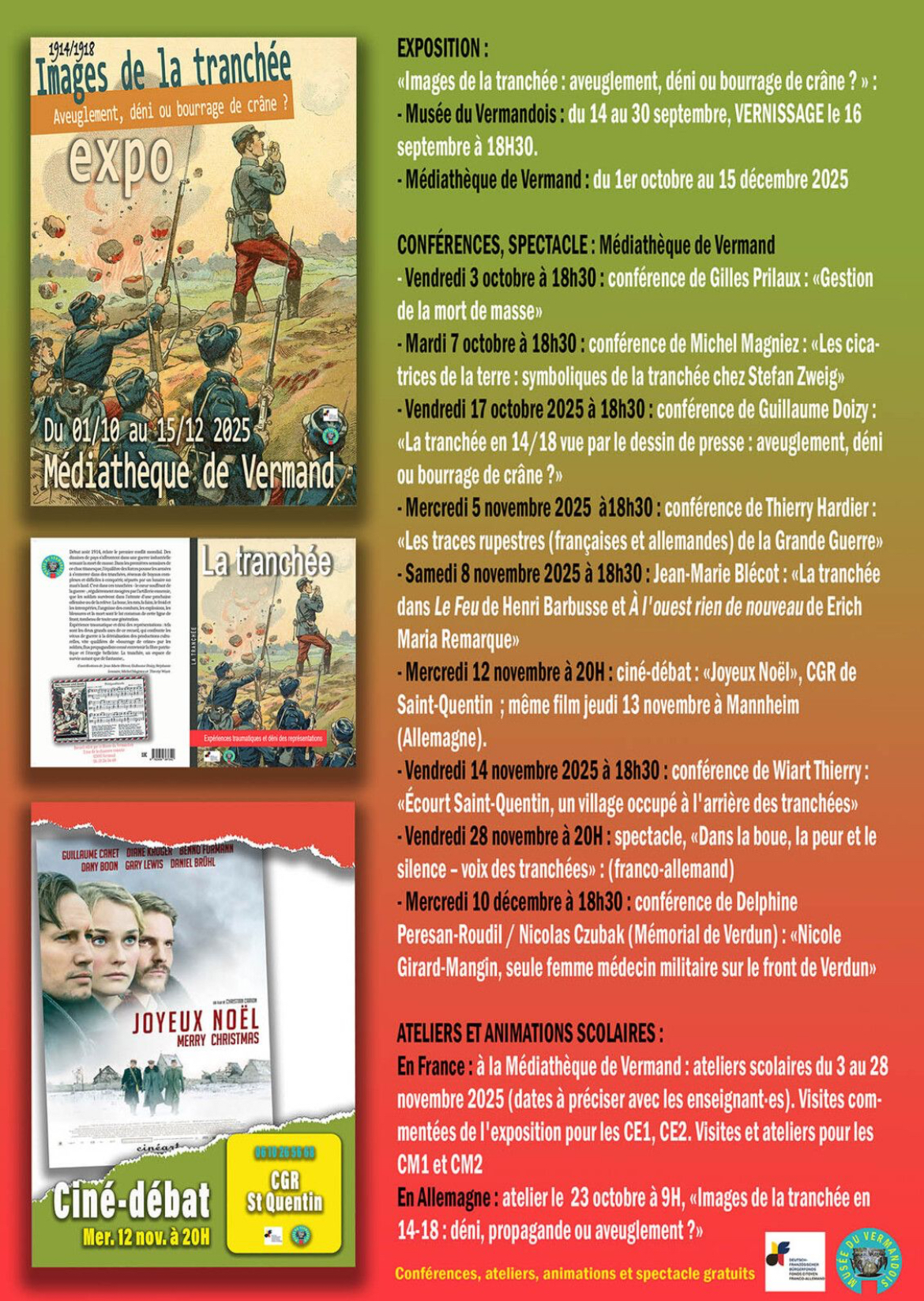 Grâce au soutien du Fonds Citoyen Franco-Allemand, le Musée du Vermandois a le plaisir de vous proposer ce cycle sur La Tranchée pendant la Grande Guerre qui se déroulera à Vermand (au Musée du vermandois et à la Médiathèque) du 14 septembre au 10 décembre 2025.