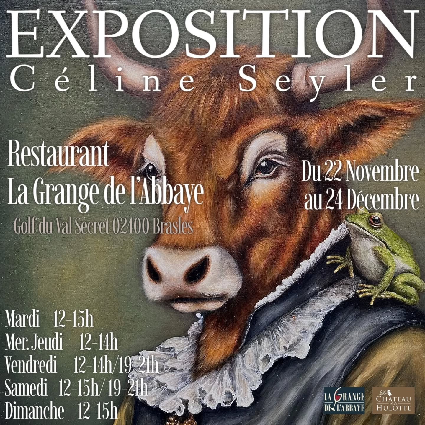 Nous vous attendons nombreux pour découvrir les œuvres de Céline Seyler au restaurant "La grange de L'Abbaye",golf du val secret. Revisiter les fables de Jean de La Fontaine sous forme de peinture. Pour plus d'informations sur les œuvres, vous pouvez contacter Céline au 06.15.96.17.67 et le restaurant "La grande de l'Abbaye" au 03.23.83.92.70.