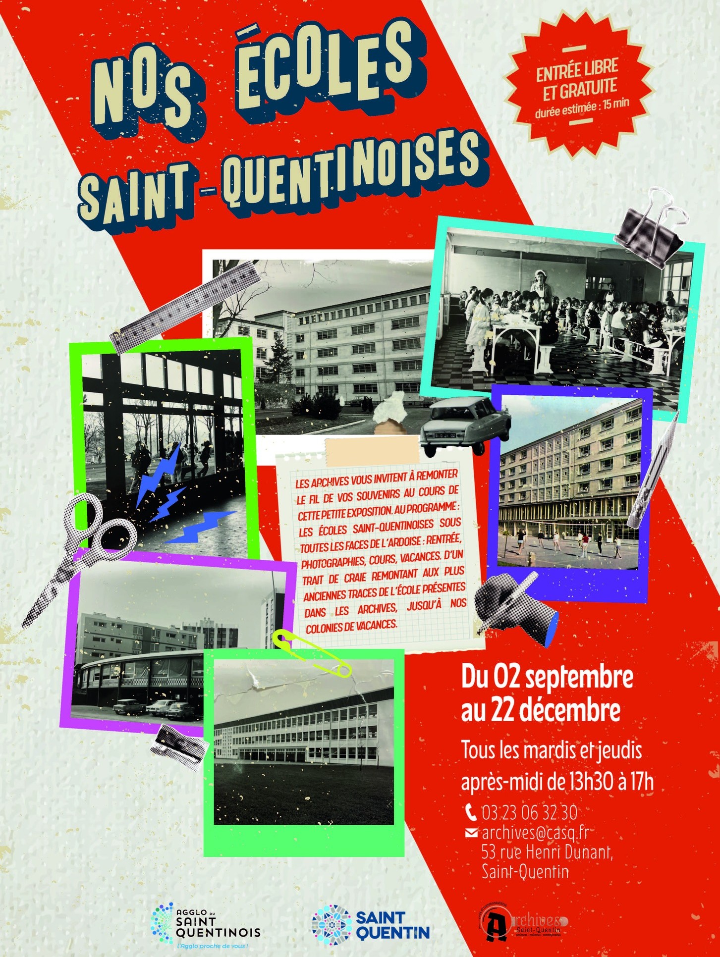 Les Archives vous invitent à remonter le fil de vos souvenirs au cours de cette petite exposition. Au programme : les écoles saint-quentinoises sous toutes les faces de l’ardoise : rentrée, photographies, cours, vacances. d’un trait de craie remontant aux plus anciennes traces de l’école présentes dans les archives, jusqu’à nos colonies de vacances. Rendez-vous au 53 rue Henri Dunant Entrée libre et gratuite. Du mardi 2 septembre au lundi 22 décembre 2025. Ouverture au public tous les mardis après-midi de 13h30 à 17h et les jeudis après-midi de 13h30 à 17h.