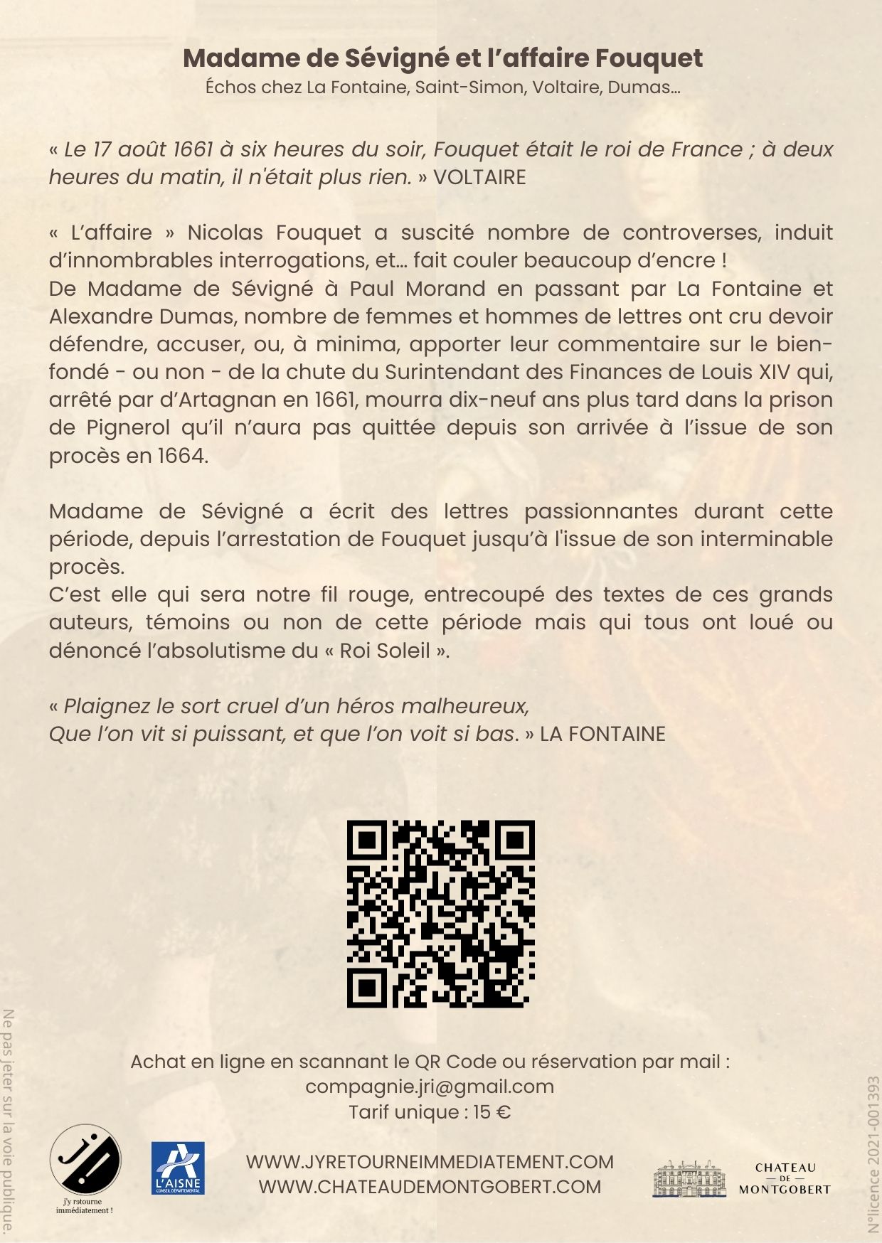 De Madame de Sévigné à Paul Morand en passant par La Fontaine et Alexandre Dumas, nombre de femmes et hommes de lettres ont cru devoir défendre, accuser, ou, à minima, apporter leur commentaire sur le bienfondé - ou non - de la chute du Surintendant des Finances de Louis XIV qui, arrêté par d'Artagnan en 1661, mourra dix-neuf ans plus tard dans la prison de Pignerol qu'il n'aura pas quittée depuis son arrivée à l'issue de son procès en 1664.