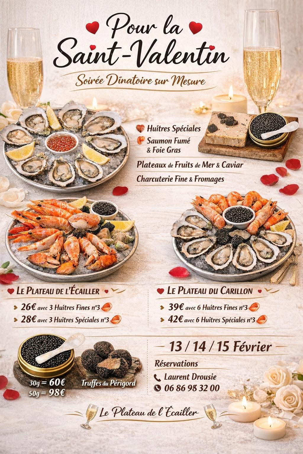 "Pour une Saint-Valentin gourmande et raffinée, l'épicerie de l'écailler vous propose une sélection d’exception :
