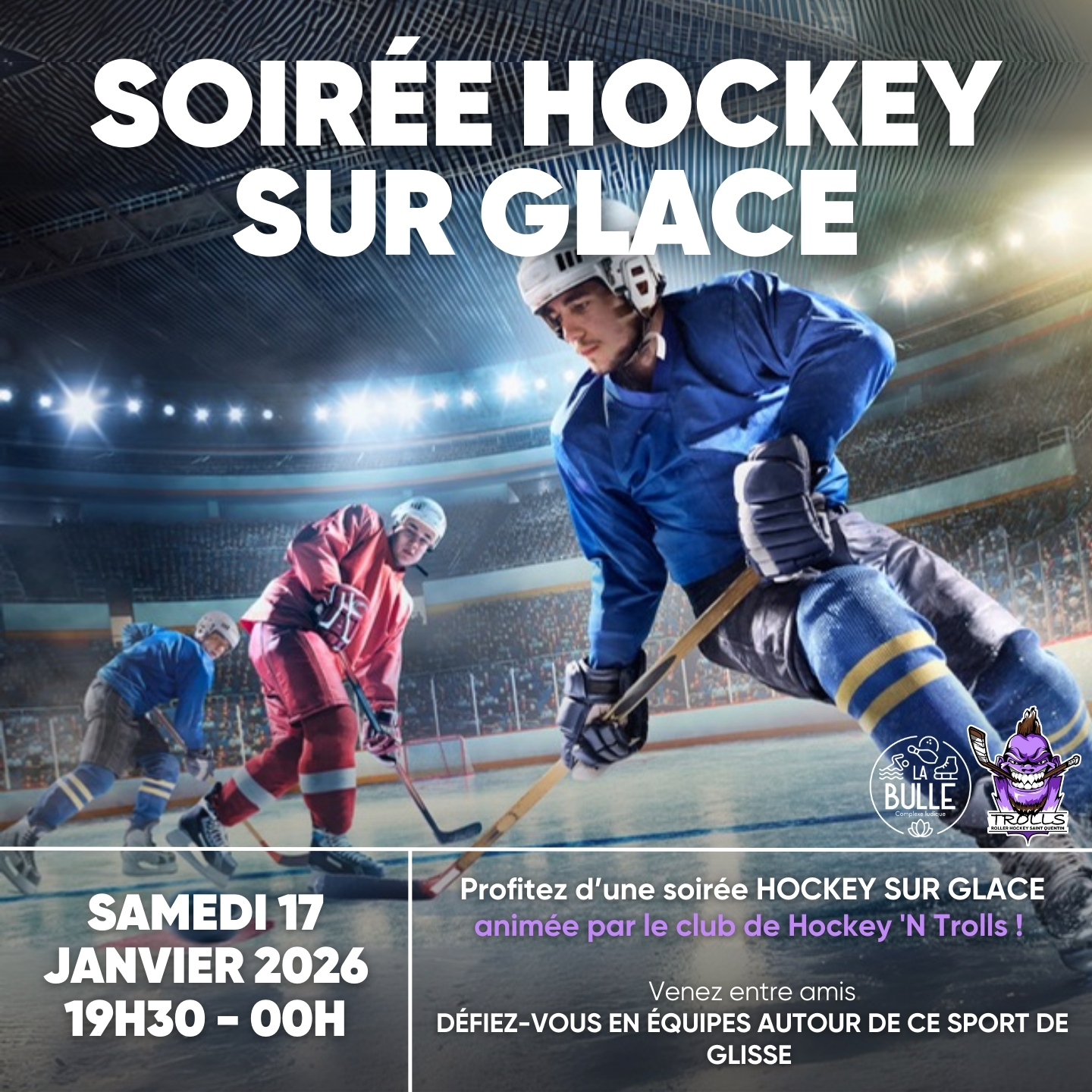 Rendez-vous pour une soirée 100 % hockey sur glace pleine de défis, de jeux et de fun. Le club Hockey'N Trolls animera la patinoire de 20h à 21h30 avec des jeux et défis hockey sur une partie de la poste privatisée (pentes accessibles). Samedi 17 janvier 2026 de 19h à minuit. Au programme : - Jeux de passes - Slalom & dribble - Course de relais par équipe avec palet - Tirs au but - Défi chrono sur un parcours défini Que vous soyez débutant ou passionné, venez glisser, vous challenger et partager une super soirée sur la glace Tarif patineur : 10 € locations de patins incluses (à vérifier) Accompagnateur : 2 € (sans accès à la glace)