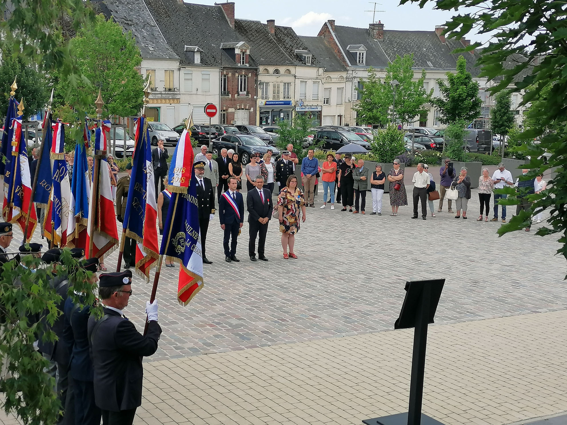 Hommage solennel à Montcornet devant l'œuvre "La Résilience"
