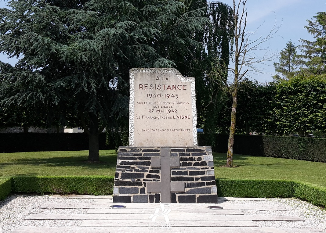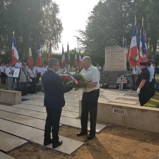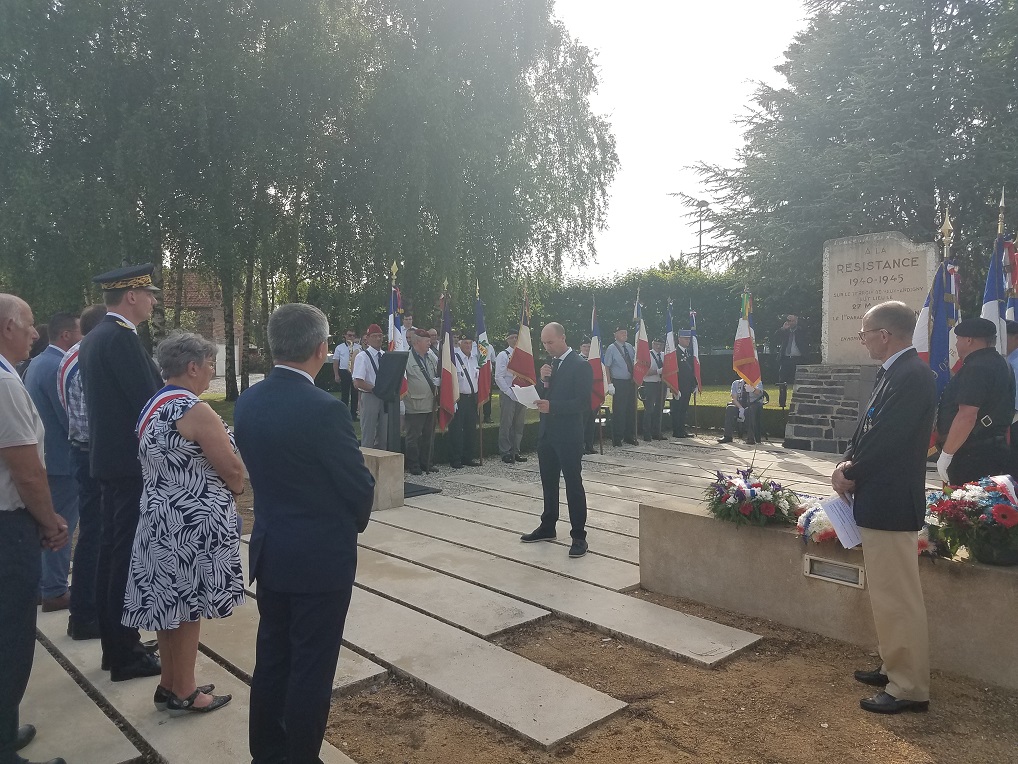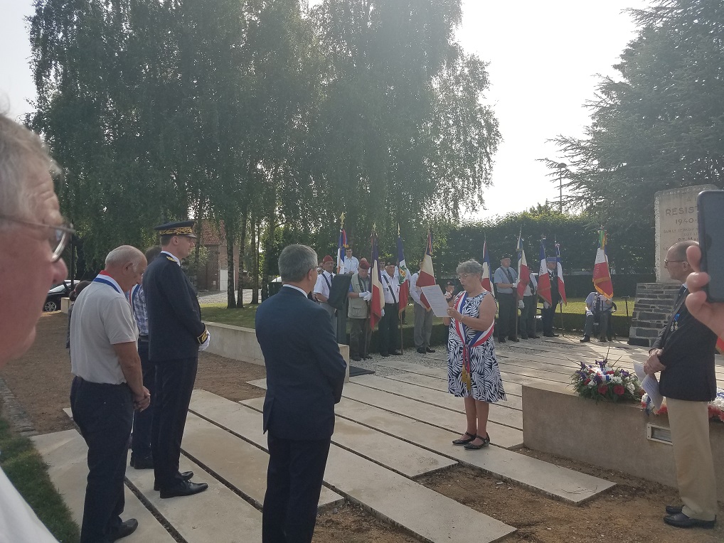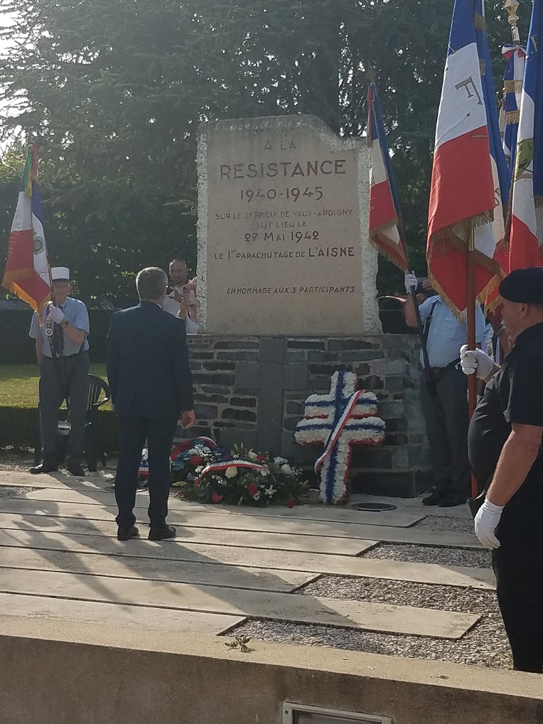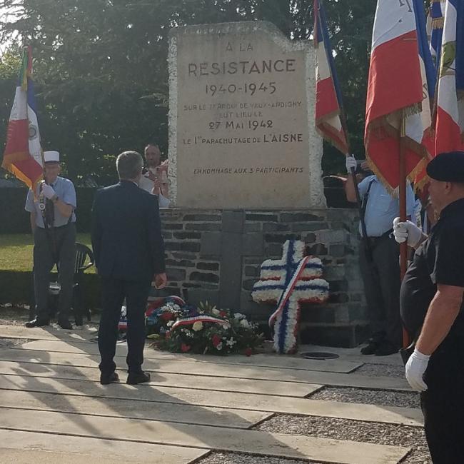 Hommage solennel à Vaux-Andigny devant le monument à la Résistance en hommage aux 3 participants au 1er parachutage de l'Aisne le 27 mai 1942.