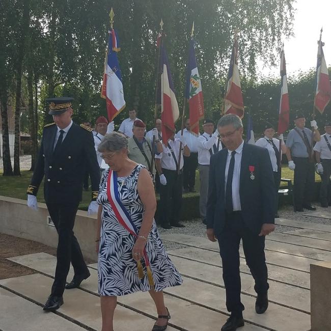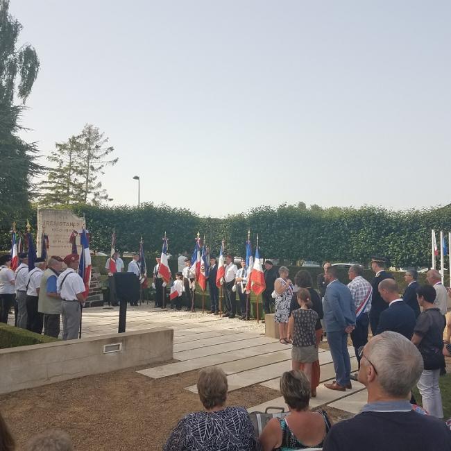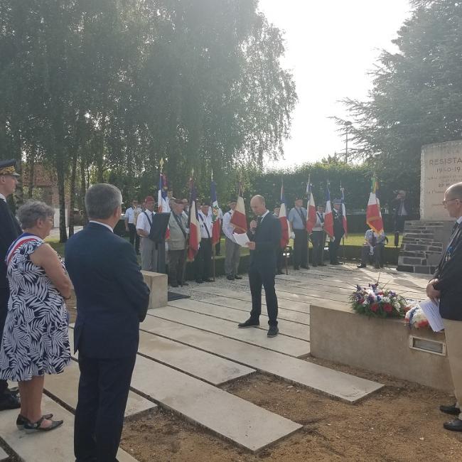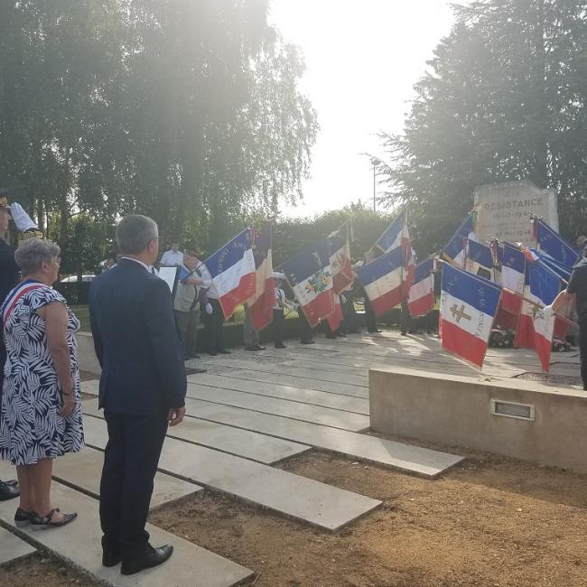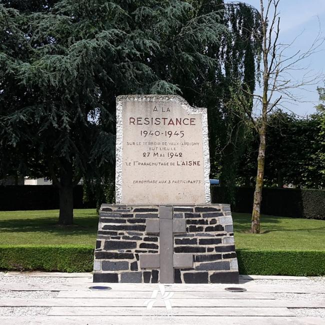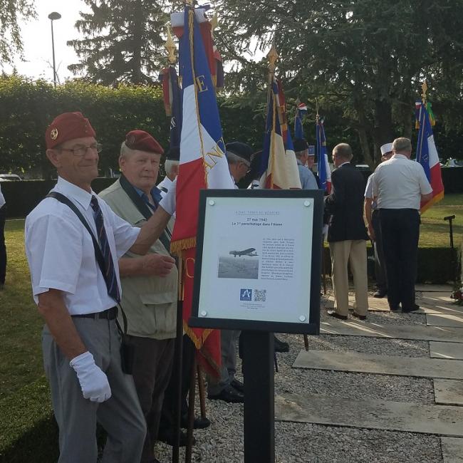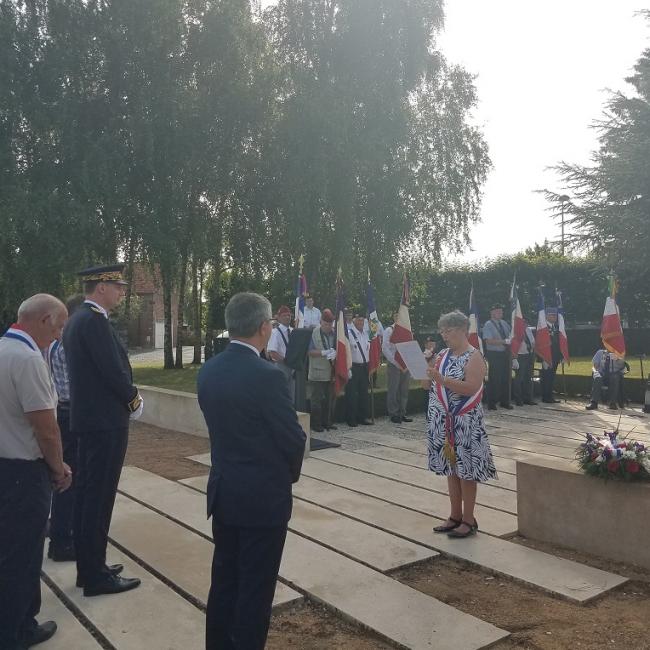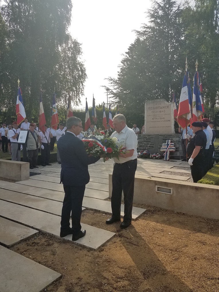Hommage solennel à Vaux-Andigny devant le monument à la Résistance en hommage aux 3 participants au 1er parachutage de l'Aisne le 27 mai 1942.