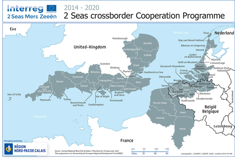 Interreg 2 Mers est un programme basé sur une zone de coopération transfrontalière maritime qui repose sur le même principe de besoins complémentaires. Le Département de l’Aisne a rejoint ce dispositif en 2014. Il réunit des territoires répartis sur quatre pays : sud de l’Angleterre, façade maritime des Pays-Bas et façade maritime des Flandres belges, départements du Nord, du Pas-de-Calais, de la Somme et de l’Aisne pour la France.