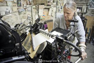 « En prison, j’animais d’abord un travail d’écriture avec les détenus, puis je les formais à la typographie pour finalement imprimer un recueil de leurs textes sur une de mes machines. Se retrouver avec dans les mains un livre où étaient imprimés leurs écrits, c’était un grand moment ! »