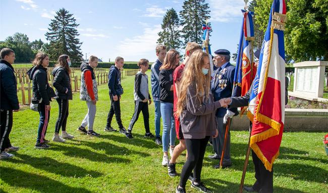 "Nous disposons aussi d’un large choix d’expositions sur des thèmes historiques qui sont proposés en prêt, mais notre action se décline d’abord sur le terrain sur des opérations mémorielles." Exemple parmi de nombreuses initiatives pilotées par l’ONACVG : une cérémonie du souvenir au cimetière La Désolation a réuni en juin dernier les élèves de SEGPA du collège Camille Desmoulins de Guise, l’IME Savart et l’École de la 2e chance de Vervins. Cette rencontre concluait un programme de rénovation et d’embellissement du lieu et s’est achevée par une minute de silence sur la tombe du chef de bataillon Marcel Cornic de la 5e brigade de chars de combat sur lequel les élèves avaient fait des recherches.