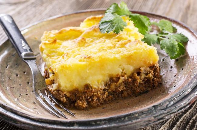 Disposer la viande dans un plat à four et la recouvrir de purée.