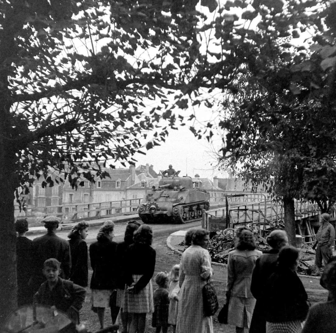 Char Sherman de la 7th Armored Division franchissant la Seine ©NARA