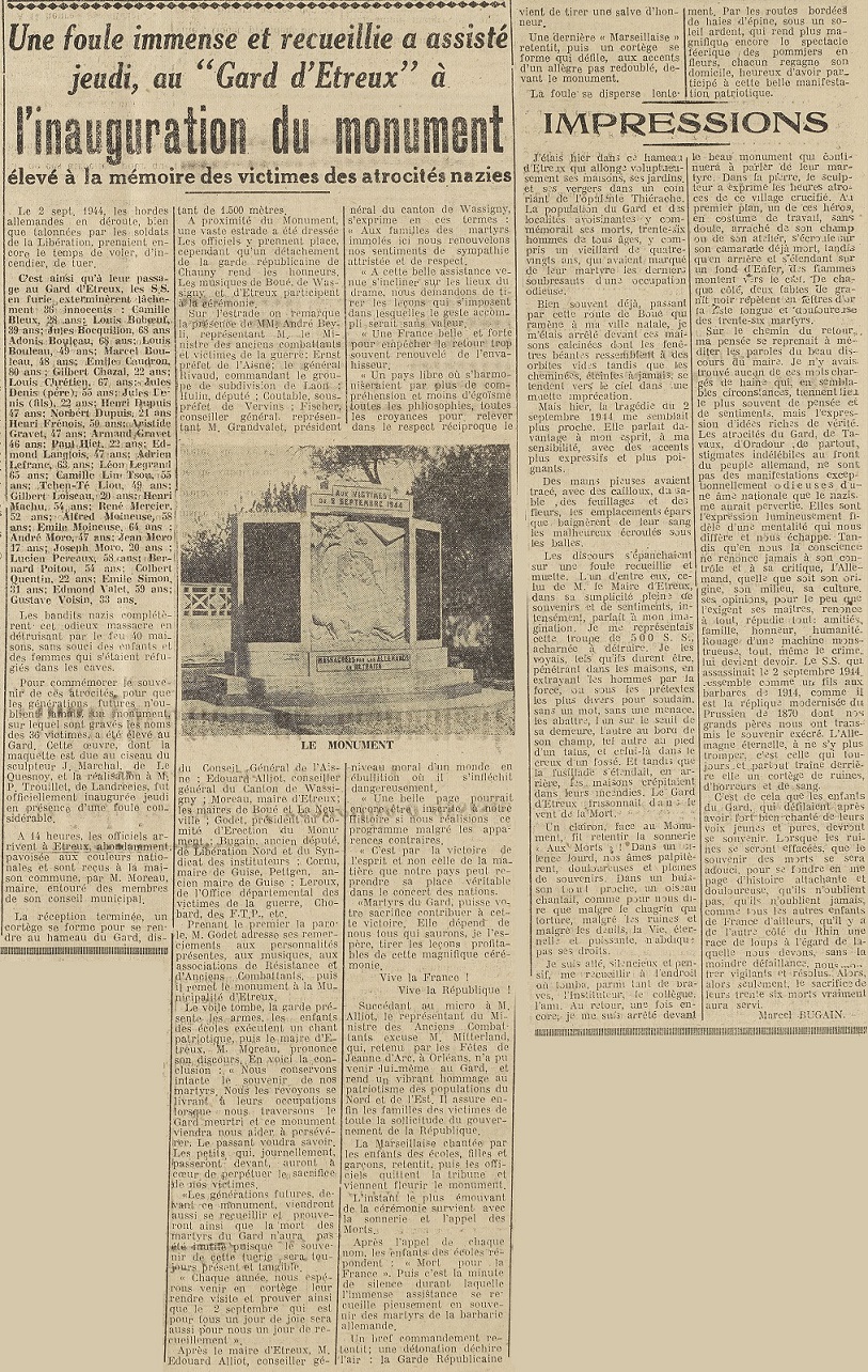 L'inauguration du monument dans l'Aisne Nouvelle du samedi 10 mai 1947