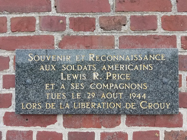 Plaque en souvenir de Lewis R. Price et ses compagnons à Crouy