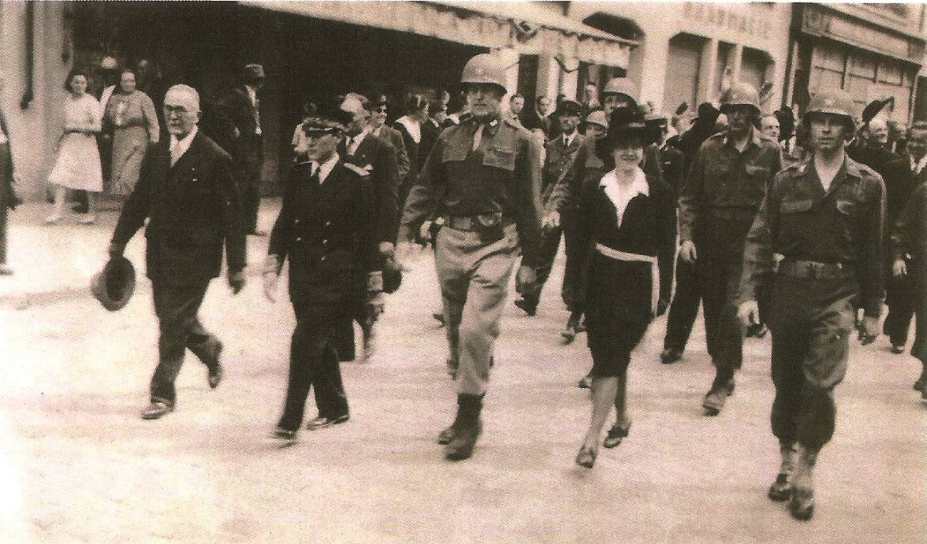 Raymonde Fiolet aux côtés du sous préfet Vaugon et des libérateurs américains ©Editions Lumpen