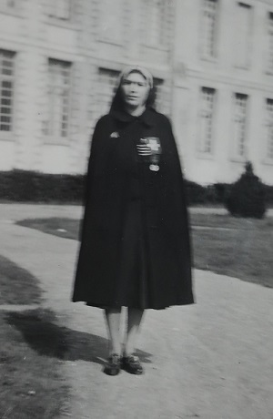 Yvonne Basquin, décorée de l'ordre national du mérite, dans les jardins de l'hôtel de ville ©Arch. du musée de la Résistance et de la Déportation de Tergnier