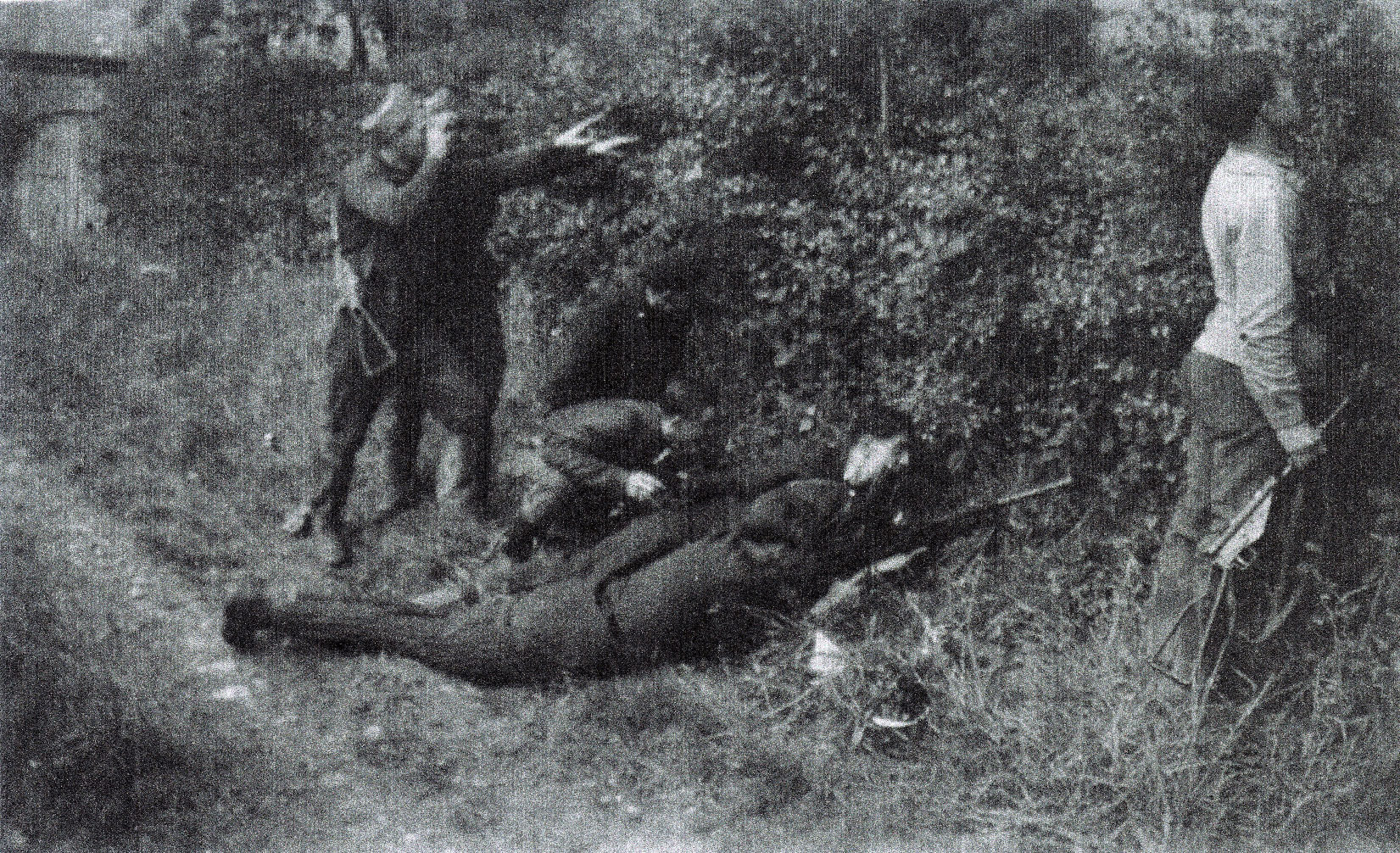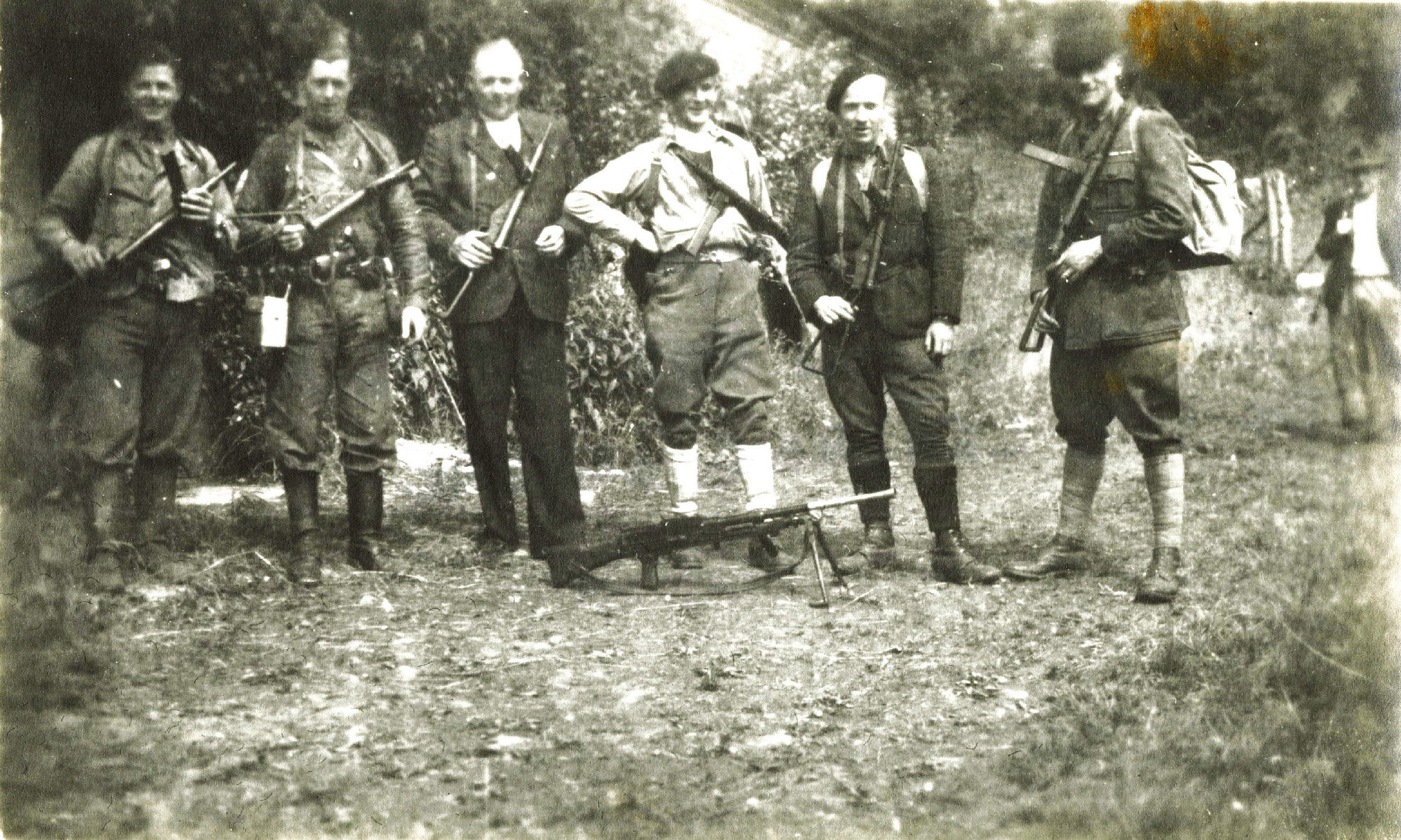 Le Maquis de Saint-Algis à l'entraînement derrière une haie ©Archives du Musée de la Résistance et de la Déportation de Tergnier