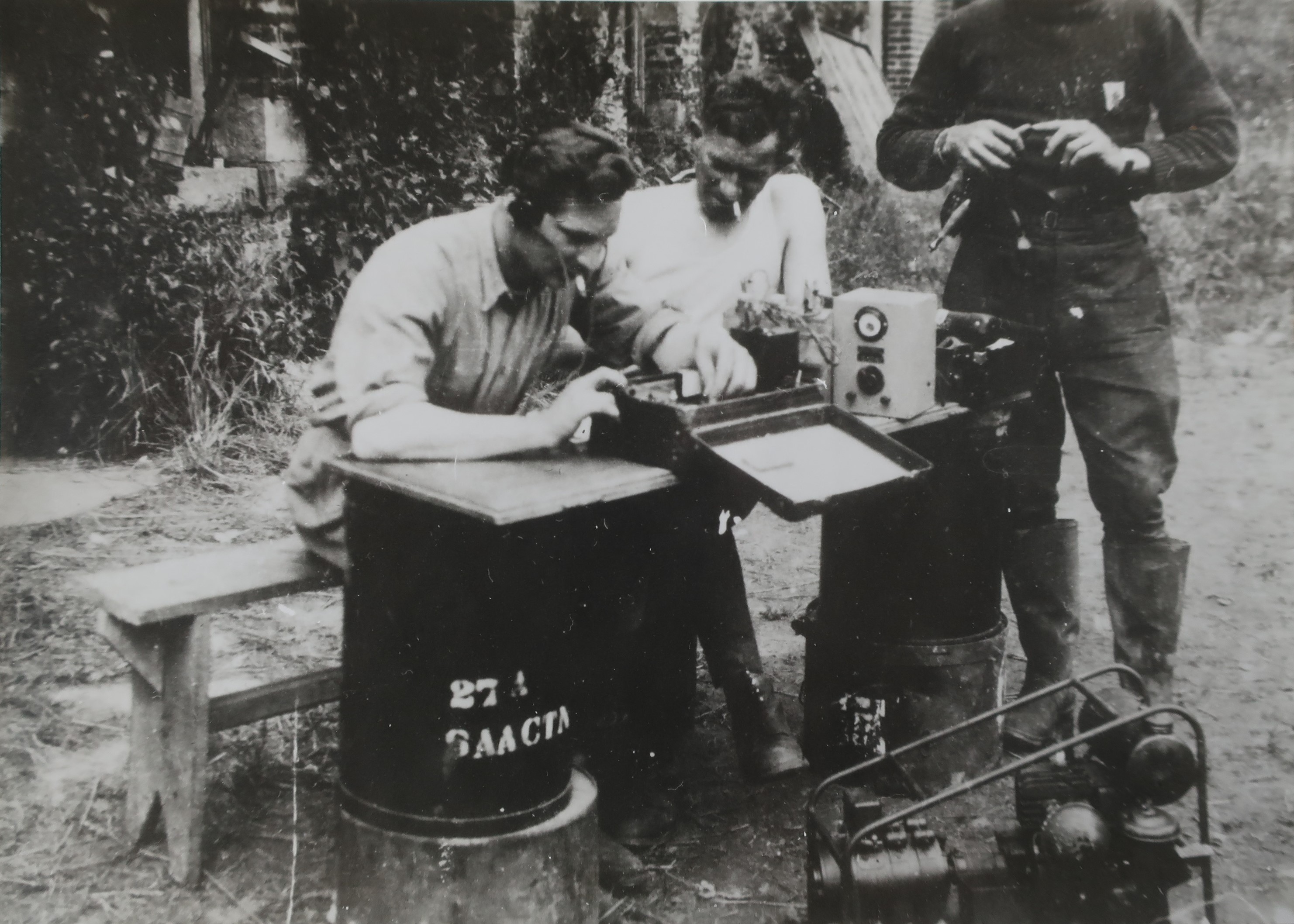 La radio du maquis de Saint-Algis, de gauche à droite Marcel Annoepel, Michel Dehamme, Camille Annoepel, Marceau Bailly ©Archives du Musée de la Résistance et de la Déportation de Tergnier