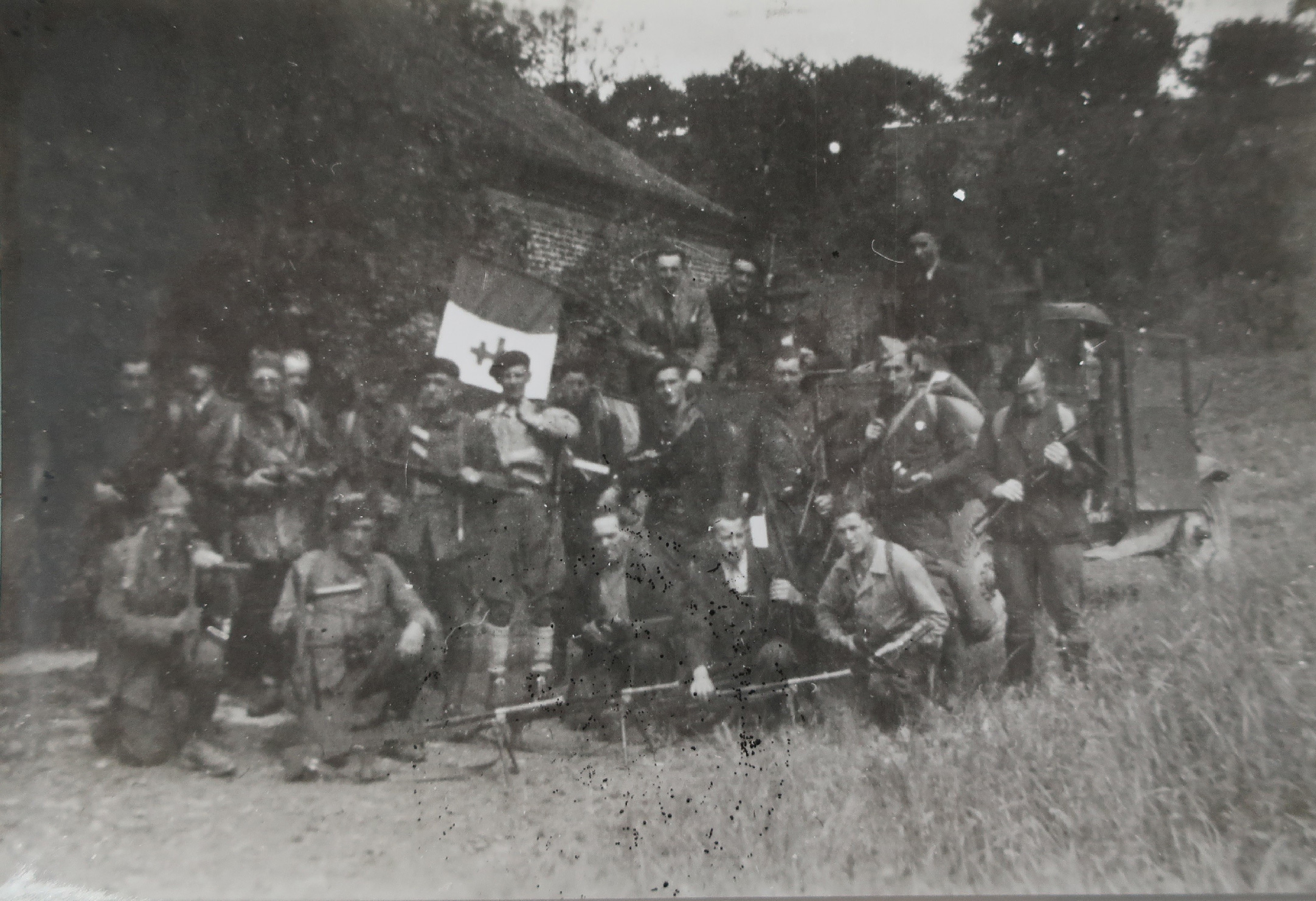 Membres du maquis de Saint-Algis en compagnie de René Fortier, Eugène Fortier, M. Armand, Bailly, Leblanc et Leporc ©Archives du Musée de la Résistance et de la Déportation de Tergnier