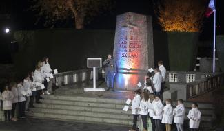 Vêtus de blanc et positionnés de part et d’autre du monument, les collégiens capellois et leurs camarades allemands sont tour à tour montés sur scène pour lire des courriers de Poilus, faisant résonner la mémoire de ceux qui ont combattu durant plus de 4 années.